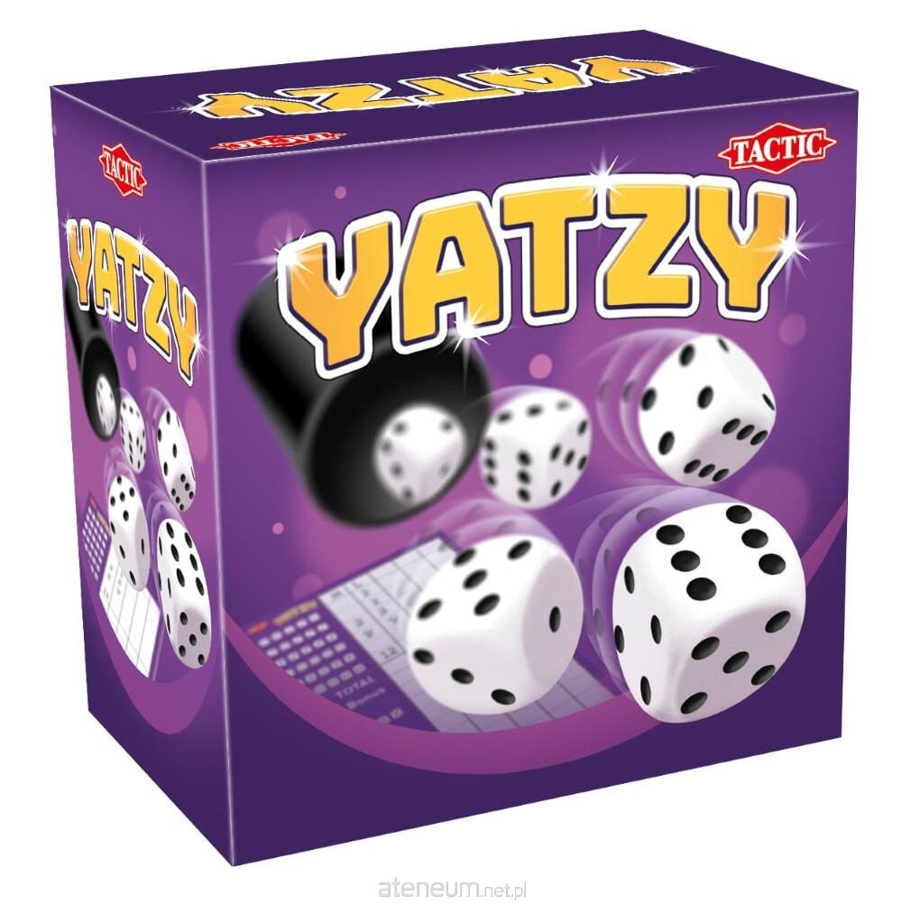 RZUCAJ KOŚĆMI I ... LICZ NA SZCZĘŚCIE. Szczęściu można jednak pomóc odrobiną taktyki. Zasady są proste. Każdy gracz rzucając pięcioma kośćmi stara się otrzymać specyficzne ułożenie oczek. Im więcej kombinacji uda mu się uzyskać tym więcej punktów zdobędzie! Yatzy jest grą, która zapewni wiele dobrej zabawy dla całej rodziny.