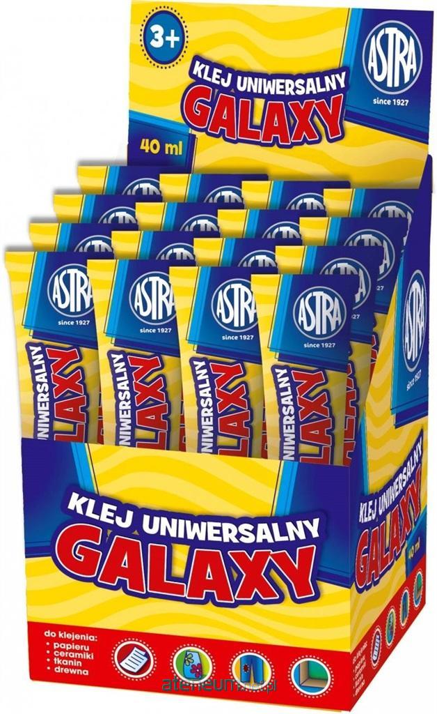 Klej ASTRA GALAXY jest klejem uniwersalnym na bazie polioctanu winylu. Posiada końcówkę z wygodnym aplikatorem umożliwiającym dozowanie kleju. Idealny do prac kreatywnych i hobbystycznych. Do stosowania w domu, w pracowniach plastycznych i introligatorniach. Przeznaczony do klejenia papieru, drewna, kasetonów, korka, ceramiki, tkanin, folii aluminiowej, styropianu, szkła. Czas schnięcia jest różny i zależy od rodzaju klejonego materiału. Po wyschnięciu tworzy elastyczną i przezroczystą warstwę. Opakowanie zbiorcze zawiera 16 sztuk.