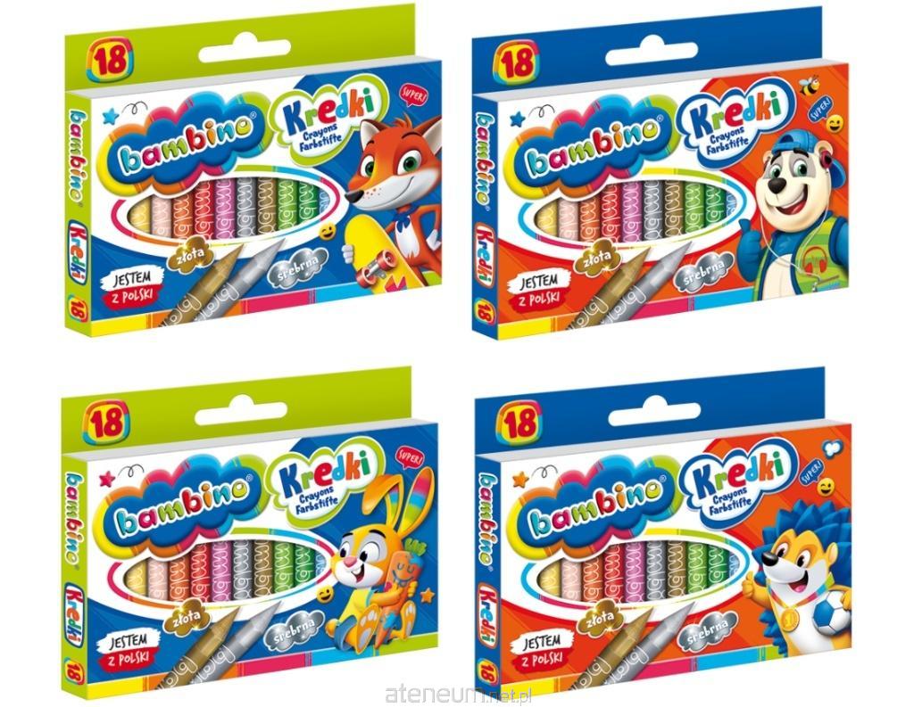 • każda kredka posiada papierową ochronną owijkę z indywidualnym motywem graficznym ułatwiającym naukę i rozpoznawanie kolorów (na każdej kredce inne zwierzątko)