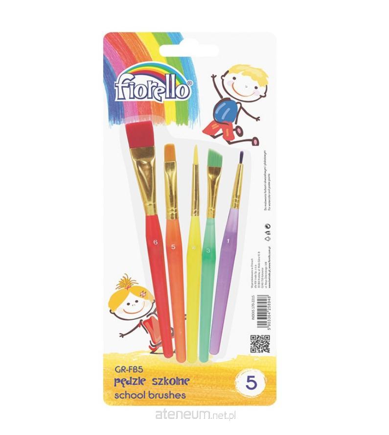 Zestaw 5 pędzelków w krótkich, kolorowych uchwytach z przezroczystego plastiku. Nylonowe włosie w kolorze uchwytu. Do różnych technik malarskich. Poręczne, mieszczą się w każdym tornistrze. 5 różnych fasonów włosia. Płaskie: szeroki, wąski, ścięty. Okrągłe: średni, wąski.