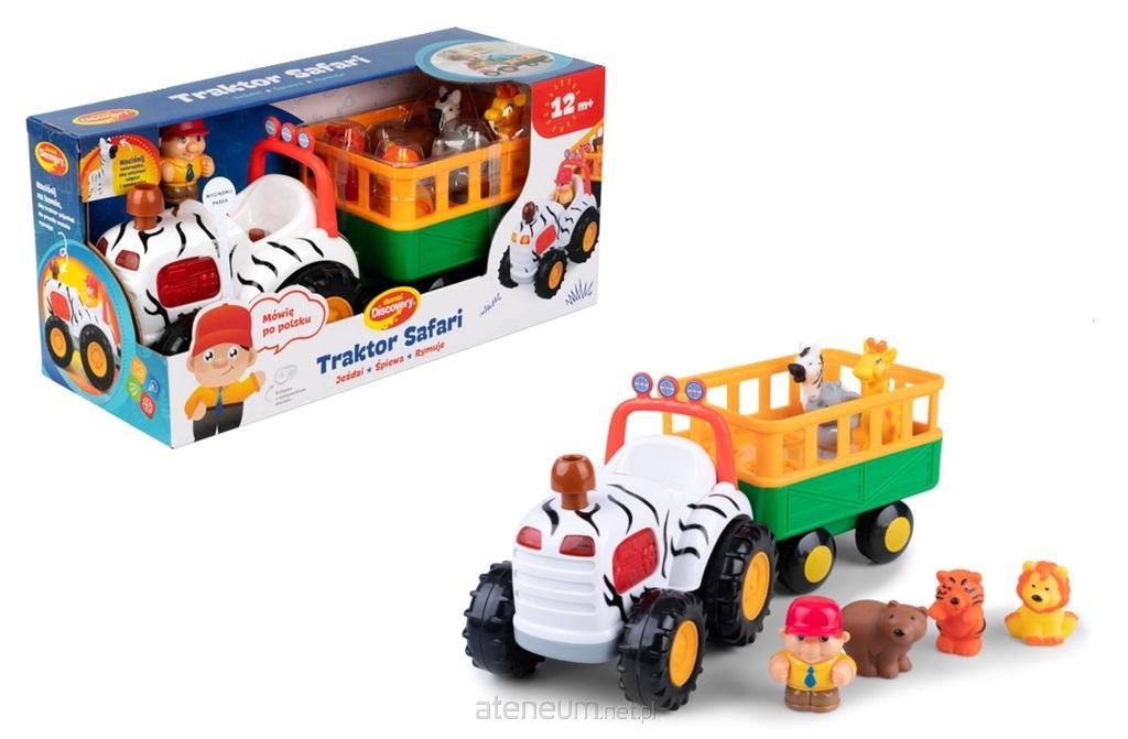 Kolorowy traktor kryje w swej przyczepie sorter kształtów oraz 6 zwierzątek. Gdy maluch umieści zwierzaka na odpowiednim miejscu, usłyszy w nagrodę realistyczny odgłos lub rymowankę na jego temat. Po naciśnięciu komina, traktor pojedzie do przodu przy dźwięku odgłosu silnika. Po naciśnięciu fotela kierowcy dziecko usłyszy piosenkę. Kiedy naciśnie na kierownicę, rozlegnie się odgłos klaksonu, a światła zaczną mrugać.
