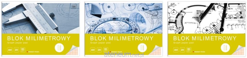 Blok z papieru milimetrowego, format A4, 20 kartek. 10 sztuk w opakowaniu zbiorczym. Format: A4. Liczba kartek: 20. Papier wysokiej jakości 80 g. Całość na podkładzie z grubej tektury. Okładka wykonana z kredy.