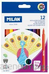 Flamastry ze stożkową końcówką 12 kolorów MILAN