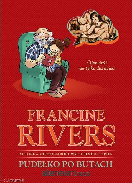 Pewnego pochmurnego, wrześniowego dnia sześcioletni Timmy O,Neil przeprowadza się do Mary i Davida Holmesów. Przynosi ze sobą bardzo niewiele rzeczy. Stopniowo poznaje nowych przyjaciół... W końcu postanawia podarować swoje dziecince skarby Komuś specjalnemu. Wzruszająca historia chłopca, któremu życie skomplikowało się zbyt wcześnie, opowiedziana przez ulubioną autorkę, Francine Rivers. Dodatkowo książka wzbogacona jest o rysunki malowane piaskiem na szkle przygotowane przez Tetianę Galistynę zwyciężczyni 6 edycji MAM TALENT. Dzieciństwo małego Timmiego trudno nazwać szczęśliwym. Jego tata odsiaduje karę więzienia a mama nie jest w stanie zapewnić mu właściwej opieki. Chłopiec trafia do rodziny zastępczej. Wszędzie nosi ze sobą czerwone pudełko po butach. Nie zdradza nikomu co znajduje się w środku. Mam w nim różne rzeczy- to najczęstsza odpowiedź na pytania ciekawskich dorosłych.. Było oczywiste, że Timmy przechowuje w pudełku wszystko, co ma najcenniejszego. Ale nadszedł dzień, w którym chłopiec postanowił podarować pudełko komuś wyjątkowemu. "Pudełko po butach" to wyjątkowa opowieść o marzeniach, przyjaźni, tęsknocie i smutku, który bywa udziałem także dzieci. Książka z niezwykle głębokim przesłaniem. Polecana 4 -10 latkom i ich rodzicom. Francine Rivers - jedna z najpopularniejszych pisarek amerykańskich, autorka ponad 20 bestsellerowych powieści, przetłumaczonych na dwadzieścia języków, takich jak: trylogii: Głos w wietrze", Echo w ciemności", Jak świt poranka". Zdobyła liczne nagrody w tym Christy Award, za stworzenie inspirującej fikcji o charakterze historycznym, złoty medal Amerykańskiego Stowarzyszenia Wydawców Chrześcijańskich ECPA za powieść Ostatni zjadacz grzechu" (zekranizowaną przez Michaela Landona). W 2010 roku książki Francine zostały uznane za najlepiej sprzedające się tytuły na liście New York Timesa".