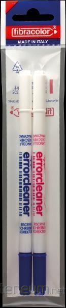 Wymazywacze do atramentu z korektorem, Mocne końcówki : stożkowa do precyzyjnego i szerokiego wymazywania oraz cienkopisząca do dokładnej korekcji, Długotrwałe działanie, Zatyczki wentylacyjne, Indywidualny kod kreskowy na korpusie, Zestaw 2 szt. w firmowym etui zawieszkowym, Produkcja: Fibracolor Włochy.