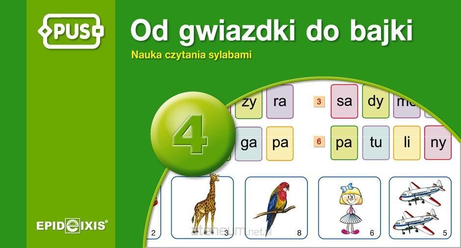 Od gwiazdki do bajki 4 jest kontynuacją serii książeczek do nauki czytania i pisania, opracowanych z myślą o dzieciach w wieku wczesnoszkolnym. Zawiera bogaty zbiór zadań służących analizie i syntezie sylabowo-głoskowej wyrazów. Kolejność ćwiczeń podyktowana została zasadą stopniowania trudności, czyli przechodzenia od wyrazów o prostszej pod względem fonetycznym budowie do wyrazów o budowie bardziej złożonej: wyrazy dwu- i wielosylabowe o prostej budowie sylabowej, np. ku-ra, li-za-ki wyrazy jedno i wielosylabowe z sąsiadującymi ze sobą spółgłoskami, np. kret, liść wyrazy zawierające grupy spółgłoskowe miękkie, np. drwal, struś wyrazy zawierające spółgłoski miękkie, np. pie-sek, wie-wiór-ka Istotnym elementem dopełniającym i wspomagającym proces nauki czytania i pisania są wykorzystane w ćwiczeniach barwne ilustracje, a baśniowa konwencja książeczki dodatkowo uatrakcyjnia ćwiczenia i sprawia, że nauka czytania staje się dla dziecka przyjemnością.