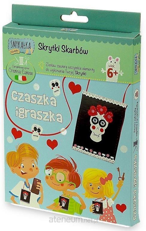 Czaszka Igraszka to kolorowe etui z rzemykiem posiadające bezpieczne zamknięciem na rzep. Przedstawia zabawną czaszkę na czarnym tle z otaczającymi ją serduszkami wokół głowy. Dostępne wymiary: 20 cm x 15 cm. Wszystkie elementy do samodzielnego przygotowania produktu znajdują się w zestawie: elementy filcowe z otworami ułatwiającymi szycie, elementy filcu samoprzylepnego, elementy dekoracyjne, plastikowa igła, zestaw zawiera czytelną i szczegółową instrukcję, ze wskazówkami projektantki, pokazującą wykonanie etui krok po kroku.