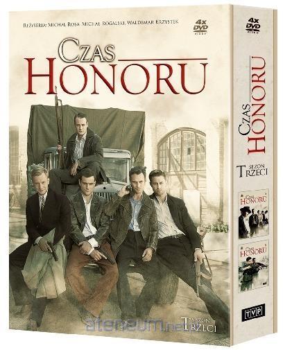 Akcja 3 części Czasu honoru rozgrywa się latem i jesienią 1941 r. w Warszawie, bezpośrednio po wydarzeniach zawartych w części drugiej. Bohaterowie serialu Bronek, Janek, Michał i Władek włączeni w struktury warszawskiego podziemia kontynuują działalność konspiracyjną. OPIS CZĘŚCI: 27. Kolega z Rochester / 28. Plan Abwehry / 29. Oddział do zadań specjalnych / 30. Zdrajcy / 31. Transport do Auschwitz / 32. Inga / 33. Bracia / 34. Zamach / 35. Operacja Generał / 36. Ostatnia runda / 37. Pocztówka z Hajfy / 38. Przed sądem / 39. Wieczór w Edenie Rok produkcji: 2010 Reżyseria: Michał Rosa, Michał Rogalski, Waldemar Krzystek Muzyka: Bartosz Chajdecki Zdjęcia: Paweł Flis Scenariusz: Jarosław Sokół, Ewa Wencel Obsada: Maciej Zakościelny, Antoni Pawlicki, Jakub Wesołowski, Jan Wieczorkowski, Katarzyna Gniewkowska, Magdalena Różczka, Piotr Adamczyk, Krystian Wieczorek, Agnieszka Więdłocha, Anna Romanowska, Krzysztof Globisz, Ewa Wencel, Olga Bołądź, Daniel Olbrychski, Karolina Gorczyca, Paweł Małaszyński i inni DANE TECHNICZNE: Czas trwania: 581 min; Nośnik: DVD; Liczba nośników: 4; Obraz: kolor; Format obrazu: 16:9; Dźwięk: DD 5.1; Materiały dodatkowe: making of, flesz historyczny; Wersje językowe: napisy angielskie, polskie; Rok wydania: 2011