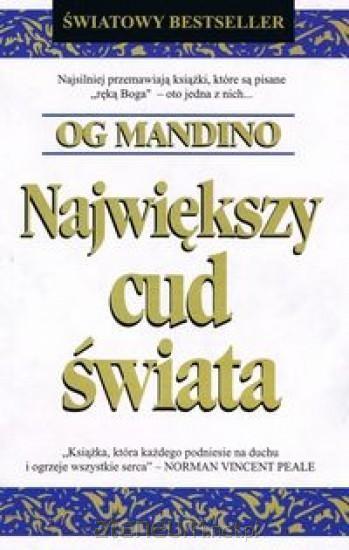 "Największy cud świata" to druga - po "Największym kupcu świata", międzynarodowym bestsellerze - książka Oga Mandino. Jest to historia niezwykłego spotkania i przyjaźni autora z tajemniczym Szymonem Potterem- opowieść o wspaniałym darze, jaki autor od niego otrzymuje.Og Mandino w subtelny sposób przekazuje nam swoiste przesłanie, w którym zawarte są ciepłe, przekonujące prawdy o wartościach człowieka, o godności, o sensie naszej egzystencji i naszych pięknych, ludzkich cechach. Książka w magiczny sposób zmieni twoje dotychczasowe spojrzenie na świat i otaczających cię ludzi. Kiedy ją przeczytasz, twoje życie już nigdy nie będzie takie samo jak przedtem, a jeśli zastosujesz kilka prostych zasad, które autor ofiaruje ci w darze, odkryjesz niebawem, jak fascynującą, niepowtarzalną i cudowną jesteś istotą.