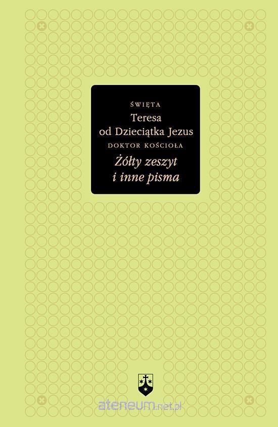 W serii Bibliotheca Carmelitana ukazały się dotychczas Dzieje duszy historia życia św. Teresy od Dzieciątka Jezus opisana przez nią samą. Wydanie to, opublikowane w roku 2013, zawierało dodatkowo m.in. wybór wierszy i modlitw Teresy, a także garść wspomnień o Świętej oraz fragmenty jej rozmów z matką Agnieszką od Jezusa (prywatnie jej rodzoną siostrą Pauliną), zapisywanych skrupulatnie przez tę ostatnią. Uznając, jak cenny i niespotykany materiał oprócz wszystkich tekstów, jakie wyszły spod pióra św. Teresy stanowią zapiski matki Agnieszki, postanowiliśmy zadbać o przedstawienie ich Czytelnikom polskim w całości, w formie, w jakiej zostały opublikowane przez francuskiego wydawcę dzieł Świętej z Lisieux. Żółty zeszyt (pod taką nazwą notatki Pauliny Martin ukazały się we Francji) otwiera zatem niniejszą książkę, stając się okazją do niecodziennego spotkania z Małą Teresą. Spotkania chwilami trudnego, bo przenikniętego ogromnym cierpieniem ale równocześnie pełnego gorącej miłości do Jezusa, którego Teresa kochała do szaleństwa. Matka Agnieszka notowała wypowiedzi swojej siostry w ciągu ostatnich miesięcy życia Świętej, od maja do końca września 1897 roku. Zapisywała zarówno pojedyncze zdania, jak i całe rozmowy, czasem uzupełniając je opisem ich kontekstu. Kiedy za pośrednictwem tych wspomnień siadamy u boku chorej Teresy, także i my stajemy się świadkami jej codziennej walki o wierność Miłości. Toczyła ją z odwagą, pokorą i cierpliwością, jakie może dać tylko łaska Boża przyjęta z otwartym sercem. Mimo narastającego bólu przez cały okres choroby zachowała humor, niejednokrotnie podnosząc na duchu przygnębione jej stanem opiekunki. Druga część książki zawiera teksty napisane przez Teresę: wiersze, modlitwy i dwie sztuki teatralne przygotowane na rekreację, dla urozmaicenia trudnego życia w klauzurze. Akcent szczególnie miły dla Czytelników w Polsce stanowi niewątpliwie postać głównego bohatera drugiej ze sztuk św. Stanisława Kostki. Wszystkim, którzy sięgną po niniejsze wydanie, życzymy, aby lektura tych stron ubogaciła ich i umocniła we własnych zmaganiach o świętość życia.
