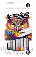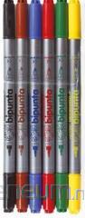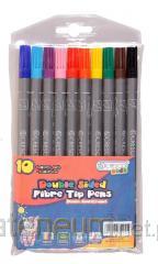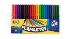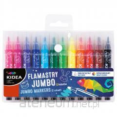 Flamastry szkolne, z tuszem na bazie wody, tusz odporny na działanie wody i światła, do stosowania na różnych rodzajach papieru, tusz flamastrów jest łatwo spieralny z rąk oraz odzieży, nie przebija na drugą stronę papieru. Komplet 12 kolorów. Fibrowa końcówka 0,8 mm.