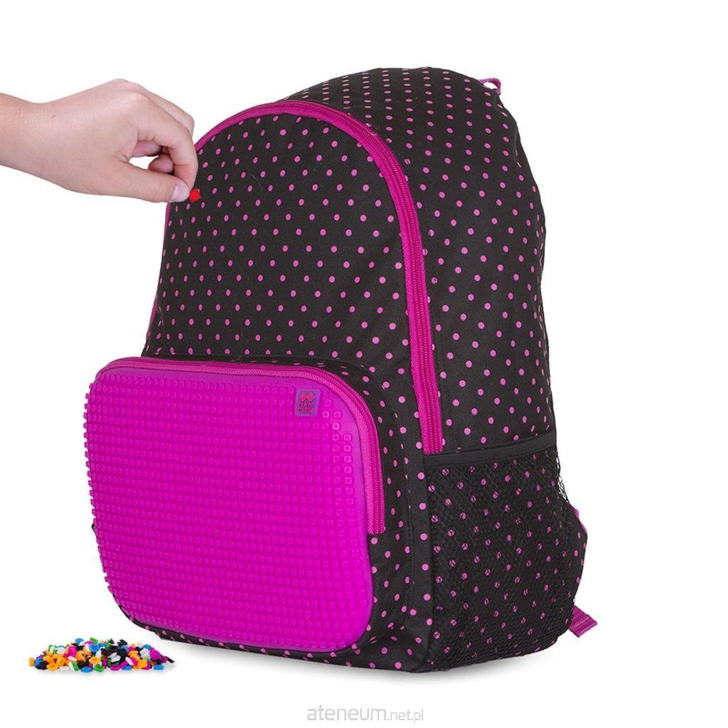 Praktyczny, komfortowy dziewczęcy plecak PIXIE CREW - czarny w kropki w kolorze purpurowym, z kreatywnym panelem, na którym można tworzyć oryginalne i spersonalizowane grafiki, za pomocą małych silikonowych pikseli. Plecak posiada funkcjonalną komorę główną, zapinaną na obustronny zamek błyskawiczny (może zmieścić dokumenty wielkości A4) i kieszeń z przodu, na mniejsze przedmioty. Po bokach plecaka umieszczono dwie zewnętrzne kieszenie z siatki, z elastyczną taśmą u góry. Wygodne użytkowanie zapewniają regulowane, miękkie, szerokie szelki i klamra na klatkę piersiową, a wyściółka wewnątrz niezawodnie chroni zawartość przed wstrząsami i upadkami. Plecak jest sprzedawany z dodatkowym darmowym zestawem około 200 kolorowych pikseli.