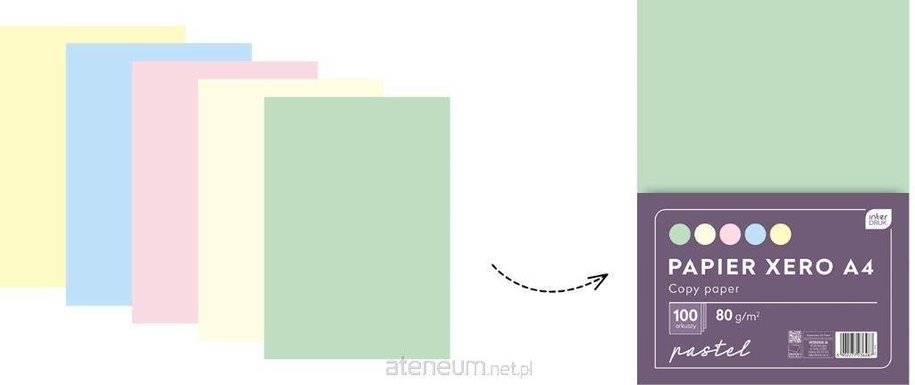 Papier ksero w rozm. A4. 5 pastelowych kolorów po 20 kartek, łącznie 100 arkuszy w ryzie.