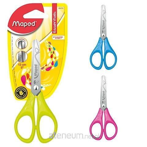 Nożyczki szkolne dla leworęcznych wykonane ze stali nierdzewnej. Grawerowane ostrza z zaokrąglonymi końcami - 10 mm. Plastikowe uchwyty profilem dostosowane do dziecięcej dłoni. Długość 13 cm. Miks 3 kolorów; niebieskie, zielone i różowe.