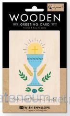 Karnet drewniany C6 Komunia kielich + koperta
