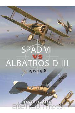 Pierwsze naprawdę nowoczesne myśliwce dwupłatowe obu stron wyprodukowane podczas I wojny światowej, solidny i zwrotny francuski SPAD VII, a także potężny, uzbrojony w dwa karabiny maszynowe niemiecki Albatros D III, reprezentowały dwie różne filozofie projektowania samolotów. Pilotowane przez takie legendy, jak von Richthofen, Guynemer czy Kennedy-Cochran-Patrick, te nadzwyczaj udane konstrukcje wyniosły pojedynki powietrzne nad okopami północnej Francji, Flandrii i Włoch na nowy poziom intensywności. Od 1917 r. Albatros D III stał się filarem sił powietrznych Niemiec oraz Austro-Węgier i toczył częste pojedynki ze SPAD-ami VII pilotowanymi przez francuskich, belgijskich, brytyjskich, włoskich i amerykańskich lotników. Niniejsze opracowanie, wzbogacone o niepublikowane wcześniej ilustracje i żywe relacje z pierwszej ręki, odtwarza dramatyzm podniebnych starć I wojny światowej.
