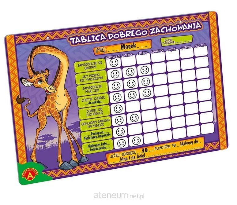 Wyjątkowa pomoc wychowawcza. Tablica pozwala na notowanie zachowania dziecka w postaci punktów dodatkach i ujemnych (zaznaczanych za pomocą symboli np. uśmiechniętych i smutnych "buziek").
