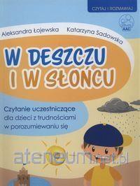 W deszczu i w słońcu jest pierwszą publikacją z serii Czytaj i Rozmawiaj. Czytanie uczestniczące dla dzieci z trudnościami w porozumiewaniu się. Stanowi pomoc do nauki aktywnego czytania dla dzieci w wieku przedszkolnym z trudnościami w porozumiewaniu się i nie tylko. Zamieszczone w publikacji książeczki: Antoś i słońce oraz Antoś i deszcz pozwalają na aktywne czytanie, zawierają proste, krótkie historie z powtarzającym się refrenem, który budzi ciekawość dziecka i mobilizuje je do odkrywania kolejnej strony. Dołączone do książek symbole obrazkowe (PCS) pozwalają dziecku brać czynny udział w czytaniu tekstu, zastępując słowa, których nie potrafi wypowiedzieć. Dziecko uczy się zadawać pytania, odpowiadać na nie, komentować. Może samodzielnie zdecydować, którą książkę chce przeczytać, czy chce czytać jeszcze, czy już skończyć. Książki są doskonałym pretekstem do wspólnych zabaw wokół tekstu.