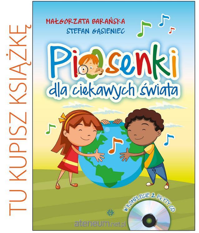 Piosenki dla ciekawych świata to zbiór utworów przeznaczonych głównie dla najstarszych przedszkolaków oraz dla uczniów klas I-III. Jest to publikacja pod wieloma względami unikalna. O wartości piosenek decydują przede wszystkim ich walory poznawcze. Teksty zawierają wiele konkretnych informacji: nazwę państwa (regionu, kontynentu), stolicy, niekiedy inne nazwy geograficzne, a także nazwy zwierząt, roślin czy potraw. Dzieci, poznając i zapamiętując piosenkę, wzbogacają swoją wiedzę o świecie. W książeczce zamieszczono teksty 30 piosenek oraz propozycje ćwiczeń i zabaw.