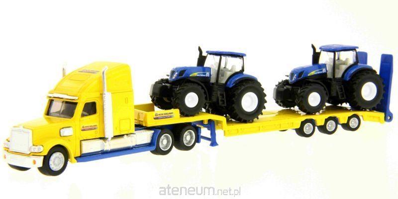 Wspaniały zestaw składający się z ciężarówki US oraz holowanych ciągników marki New Holland z serii T8. Ciągniki są utrzymane w kolorystyce cechującą markę New Holland. Zdejmowane kabiny ciągników. Bardzo starannie wykonany z dbałością o wszelkie szczegóły.