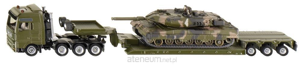 Autentyczna reprodukcja oryginału. Matowe wykończenie wojskowego kamuflażu. Słynny czołg Leopard jest przewożony na 4-osiowym transporterze. Możliwość odłączenia przyczepy. Model SIKU oprócz perfekcyjnego wykonania i dbałości o szczegóły, jest świetną interesującą, bardzo trwałą i wytrzymałą zabawką.