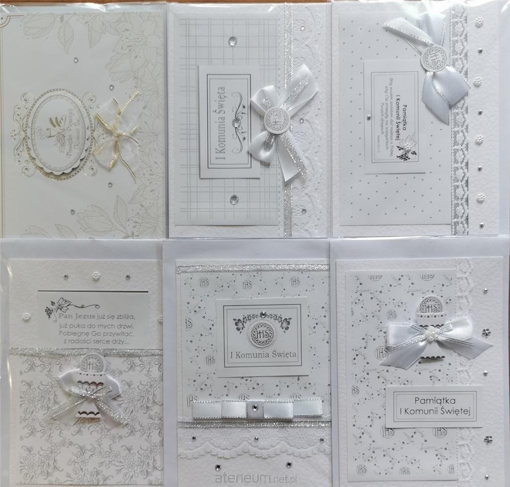 Karnet ręcznie robiony na Komunię w formacie C5 + koperta.Mix wzorów, towar wysyłany losowo.
