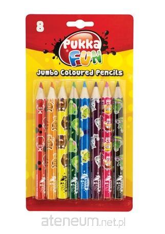 Kredki Jumbo 8 kolorów PUKKA - Zmywalne - Kredki Jumbo w różnych kolorach, idealne dla dzieci, które lubią rysować - Stworzone specjalnie dla małych rączek - Dzięki większej średnicy kredki są łatwiejsze w trzymaniu i odporniejsze na uszkodzenia - Każda kredka posiada zabawny, kolorowy nadruk Pukka Fun