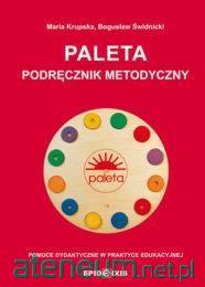 Pomoce dydaktyczne w praktyce edukacyjnej. PALETA Największą zaletą PALETY jest to, że dziecko, bawiąc się, przyswaja wiadomości, samodzielnie rozwiązuje zadania, sprawdza wynik, koryguje ewentualne błędy. Robi to wszystko pod kontrolą dorosłego, ale bez jego pomocy. W ten sposób respektowane jest prawo dziecka nie tylko do popełniania błędów, lecz także do ich samodzielnego korygowania. Podręcznik metodyczny ukazuje, jak praktycznie wykorzystać PALETĘ w nauczaniu: języka polskiego, matematyki, środowiska a także innych przedmiotów, inspiruje do układania własnych zadań z wykorzystaniem tarcz blanko. Zawiera gry i zabawy z PALETĄ, przykłady zastosowania tarcz na zajęciach w edukacji przedszkolnej i wczesnoszkolnej. Dla każdego zestawu tematycznego tarcz ćwiczeń przygotowano cele ogólne i szczegółowe oraz polecenia i tematykę, a także wybrano ilustracje siedmiu reprezentatywnych tarcz. Szczegółowy przebieg zabawy przedstawiono w sposobach realizacji. Znajdują się tam wskazówki, jak poprowadzić zabawę, żeby wzbudzała zainteresowanie dzieci, oraz jak przygotować ćwiczenia doskonalące percepcję wzrokową, ćwiczenia językowe poszerzające słownictwo i wspomagające rozwój mowy dziecka, ćwiczenia zawiązane z liczeniem itp. Wzbogaceniem i cennym uzupełnieniem treści podręcznika metodycznego PALETA jest artykuł prof. Bogusława Śliwerskiego Samokontrola i samoocena uczącego się w modelu prometejskiej edukacji. Profesor wyjaśnia w nim, dlaczego tak ważne w rozwoju człowieka są samoświadomość, samodzielna nauka, samokontrola i samoocena oraz że rozwój tych cech wspierają właśnie pomoce dydaktyczne z elementami samokontroli i samooceny.