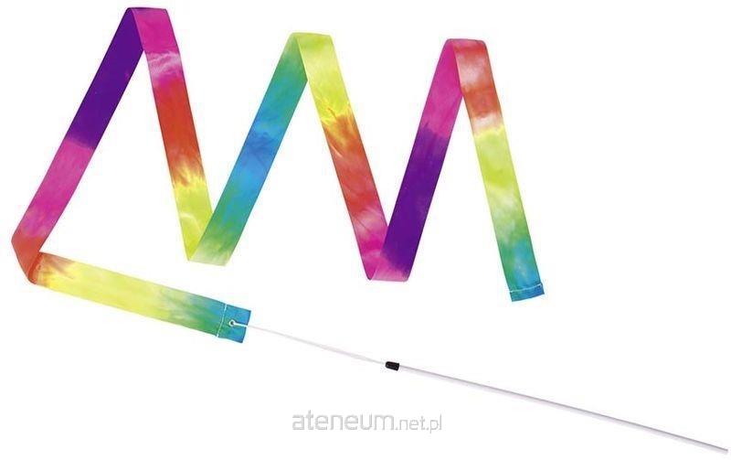 Tęczowa wstążka gimnastyczna jest idealnym dopełnieniem zadań akrobatycznych. Wstążka zamocowana została na drewnianym patyku ułatwiającym jej trzymanie.Długość wstążki: 200 cm