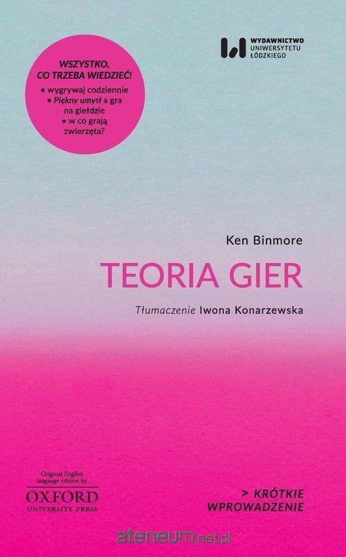 Interdyscyplinarna seria KRÓTKIE WPROWADZENIE piórem uznanych ekspertów skupionych wokół Uniwersytetu Oksfordzkiego przybliża aktualną wiedzę na temat współczesnego świata i pomaga go zrozumieć. W atrakcyjny sposób prezentuje najważniejsze zagadnienia XXI w. - od kultury, religii, historii przez nauki przyrodnicze po technikę. To publikacje popularnonaukowe, które w formule przystępnej, dalekiej od akademickiego wykładu, prezentują wybrane kwestie. Książki idealne zarówno jako wprowadzenie do nowych tematów, jak i uzupełnienie wiedzy o tym, co nas pasjonuje. Najnowsze fakty, analizy ekspertów, błyskotliwe interpretacje. Opiekę merytoryczną nad polską edycją serii sprawują naukowcy z Uniwersytetu Łódzkiego: prof. Krystyna Kujawińska Courtney, prof. Ewa Gajewska, prof. Aneta Pawłowska, prof. Jerzy Gajdka, prof. Piotr Stalmaszczyk. Teoria gier znajduje zastosowanie nie tylko w dziedzinie biologii ewolucyjnej i ekonomii, lecz także rewolucjonizuje psychologię, psychiatrię i nauki polityczne. Sprawdza się w badaniach naukowych i w codziennym życiu. Czy przed podjęciem decyzji warto rzucić monetą? Kiedy opłaca się blefować? Czy pokerzyści lepiej się targują? Dlaczego John Nash, którego historia zainspirowała twórców filmu Piękny umysł, dostał Nobla?