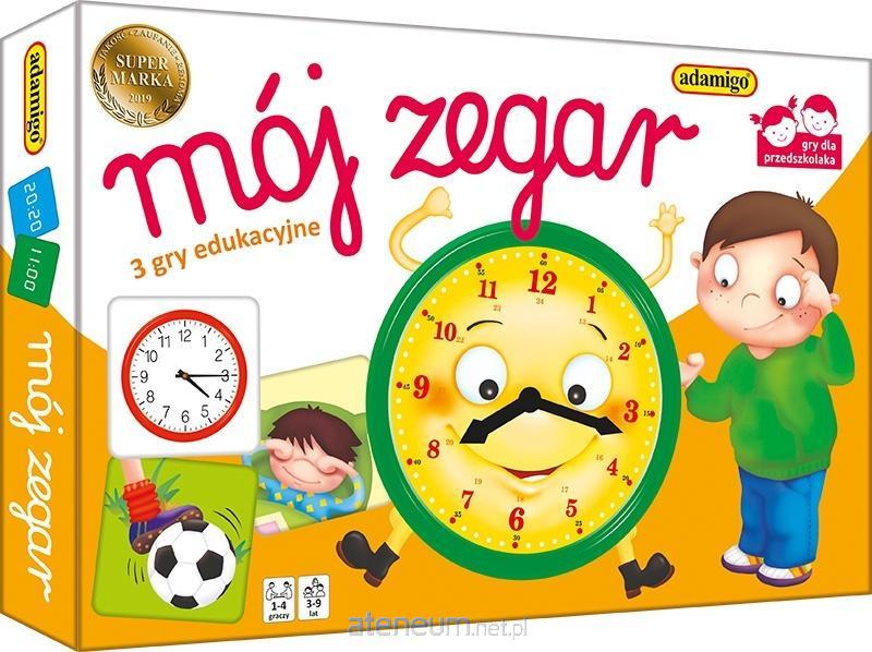 "Mój zegar" to ciekawa oraz mądra gra zarówno dla małych, jak i większych miłośników dobrej zabawy. Kolorowe, interesujące plansze i tafelki oraz duży zegar z ruchomymi wskazówkami pokazują, jak przyporządkować różne czynności do odpowiednich pór dnia.