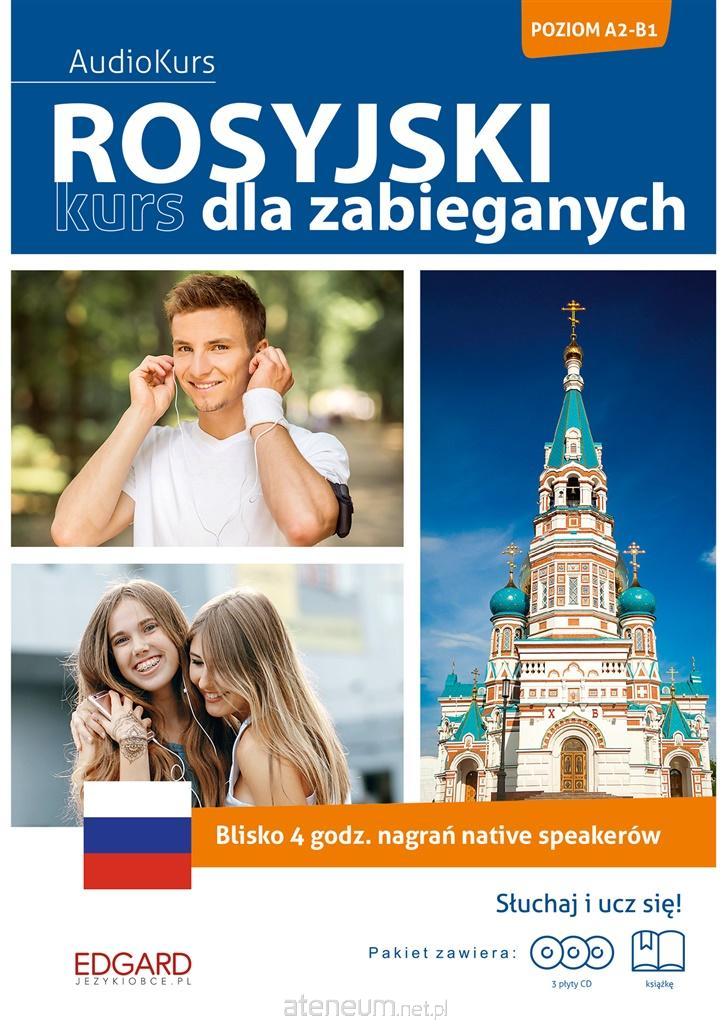 Rosyjski dla zabieganych to rozbudowany kurs do nauki języka poprzez słuchanie nagrań profesjonalnych lektorów. To idealna propozycja dla osób, które znają podstawy rosyjskiego i chcą odświeżyć wiedzę, rozbudować słownictwo, poznać przydatne konstrukcje gramatyczne, a także doskonalić umiejętność konwersacji. Rosyjski Kurs dla zabieganych to: - 220 minut nagrań native speakerów słuchasz, powtarzasz i uczysz się! - praktyczne i interesujące dialogi związane z tematem lekcji - ponad 60 ćwiczeń oraz testy kompetencji z kluczem odpowiedzi - ciekawostki dotyczące Rosji - niezbędne słowa, zwroty i wyrażenia - najważniejsze zagadnienia gramatyczne, m.in.: czasowniki, czas przeszły, zaimki i rzeczowniki W skład pakietu wchodzą książka oraz trzy płyty CD Audio z nagraniami. Słuchaj i ucz się w drodze do pracy, szkoły, na siłowni w samochodzie!