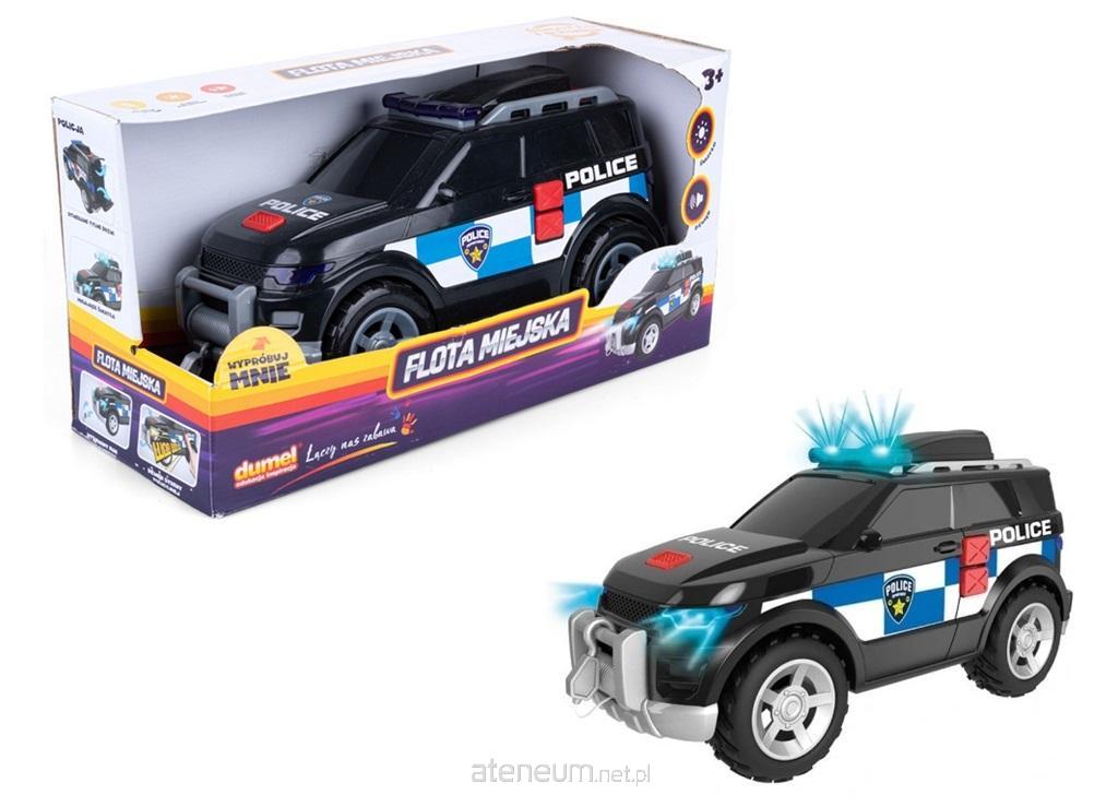 Samochód policyjny, z którym zabawa zmieni się w ekscytującą przygodę. Na boku pojazdu umieszczone są 2 czerwone przyciski aktywujące realistyczne dźwięki i migające światełka. Pojazd posiada także otwierane tylne drzwi i wyciągany hak holowniczy.