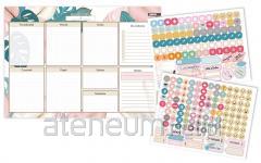 Wyklejka notesu oraz kieszeń na ważne, luźne notatki wykonana z ozdobnego papieru w kolorze granatowym.