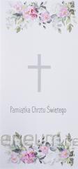 Karnet Chrzest DL C18 - Krzyż kwiaty róż