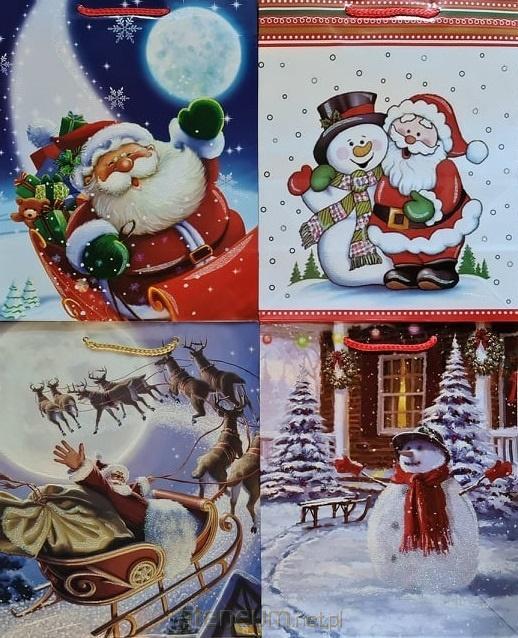 Torebka ozdobna Święta PL-9 BROKAT duża Mikołaje