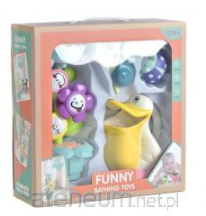 zestaw zawiera 11 elementów, między innymi trzy kubeczki, wiatraczek cztery pierścienie na przyssawkach;