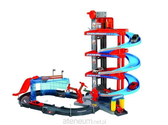 Parking Mega Dealer Showroom firmy Bburago to wielki plac zabaw dla małego kierowcy. Wielopoziomowy parking posiada dodatkowy tor zjazdowy oraz wiele elementów ruchomych, co zapewni wiele godzin zabawy. Parking posiada 4 poziomy, ruchomą obrotową windę, a na dole na auta czeka automyjnia. Na popsute auta czeka również warsztat serwisowy oraz dystrybutor paliwa. Zestaw zawiera dwa oryginalne, metalowe modele samochodów Bburago z kolekcji Street Fire w skali 1:43. Całość wykonana została z wysokiej jakości tworzywa, z dbałością o każdy szczegół. Zestaw Mega Dealer Showroom jest kompatybilny z wszystkimi modelami Bburago w skali 1:43.