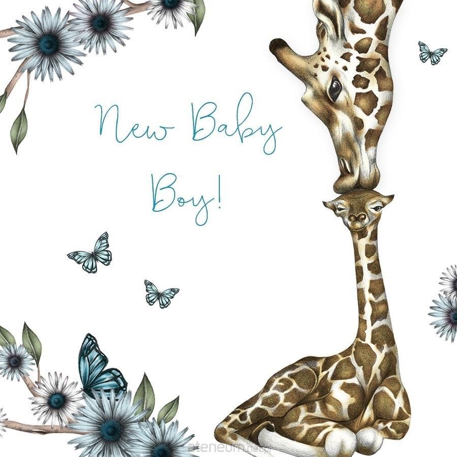 Karnet bez tekstu z kopertą, ręcznie robiony z kryształkiem Swarovski, Narodziny chłopiec żyrafy.