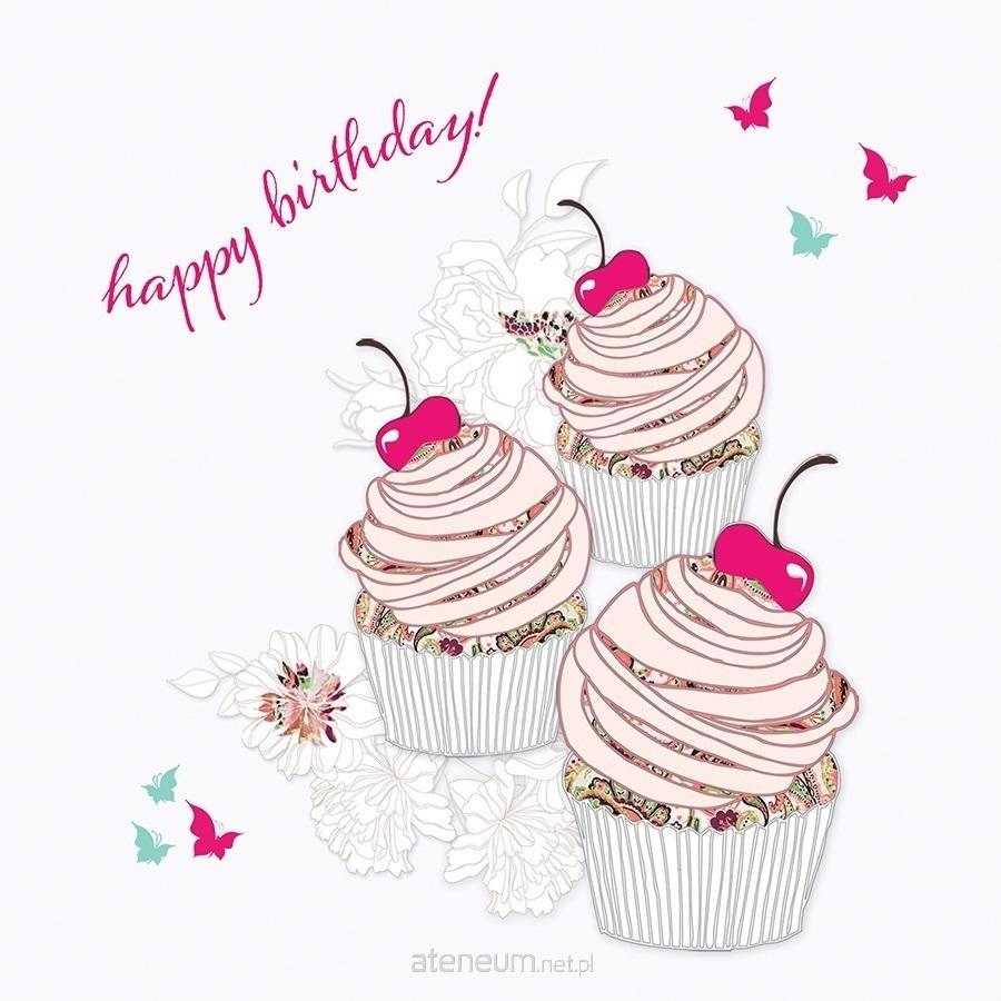 Karnet bez tekstu z kopertą, ręcznie robiony z kryształkiem Swarovski, Urodziny babeczki z wiśniami.
