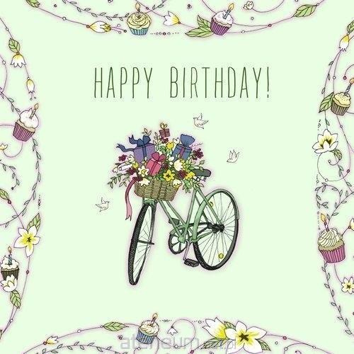 Karnet bez tekstu z kopertą, ręcznie robiony z kryształkiem Swarovski, Urodziny rower z kwiatami.