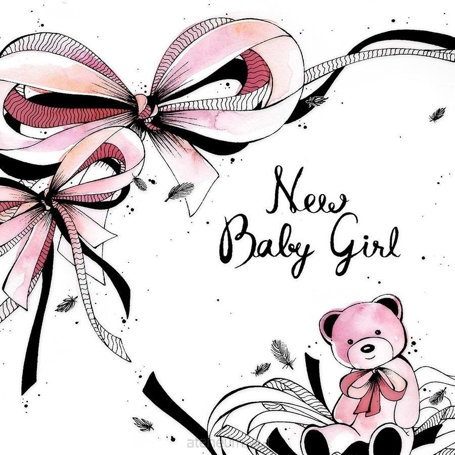 Karnet bez tekstu z kopertą, ręcznie robiony z kryształkiem Swarovski, Narodziny dziewczynka miś.