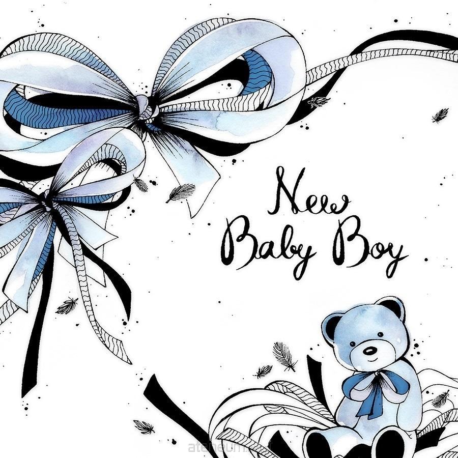 Karnet bez tekstu z kopertą, ręcznie robiony z kryształkiem Swarovski, Narodziny chłopiec miś.