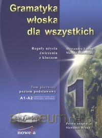 Gramatyka włoska dla wszystkich "Gramatyka włoska dla wszystkich 1" to pierwszy z dwóch tomów książki opracowanej specjalnie z myślą o Polakach uczących się języka włoskiego. Niniejszy tom przeznaczony jest dla osób będących na poziomie podstawowym i średniozaawansowanym (poziomy A1 i A2 wg Europejskiego systemu opisu kształcenia językowego). Zalety "Gramatyki włoskiej dla wszystkich" to: dobór materiału gramatycznego z naciskiem na zagadnienia stwarzające najwięcej trudności; materiał teoretyczny poparty odpowiednimi zestawami ćwiczeń; klucz umożliwiający szybkie sprawdzenie poprawności wykonanego ćwiczenia; przejrzysty podział tematyczny i atrakcyjna szata graficzna ułatwiająca korzystanie z podręcznika; kompletne i łatwo zrozumiałe objaśnienia teoretyczne, poparte dużą ilością przykładów z życia codziennego; tablice gramatyczne na końcu książki, zestawiające najważniejsze z omówionych w niej zagadnień. "Gramatyka włoska dla wszystkich 1" to książka kompletna i przyjemna w użyciu. Może być wykorzystywana jako uzupełnienie dowolnego podręcznika do nauki języka włoskiego przez osoby uczące się pod kontrolą nauczyciela, a także - dzięki zawartemu w niej kluczowi do ćwiczeń - przez osoby uczące się samodzielnie.