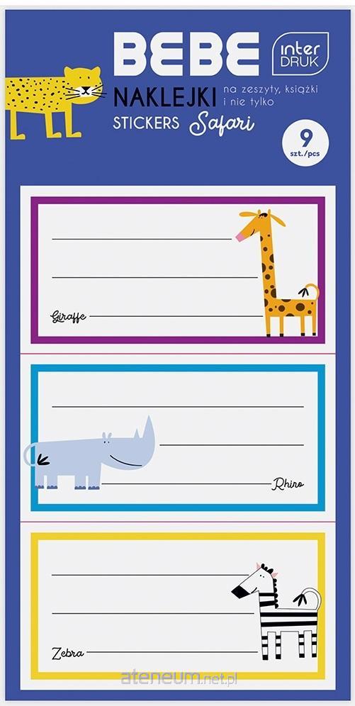 Zestaw 9 naklejek na zeszyty z podobiznami zwierzaków B&B z miejscem na podpis.