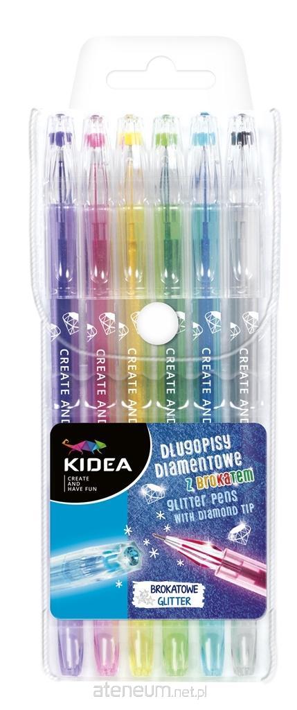 Długopisy żelowe z brokatem 6 kolorów KIDEA