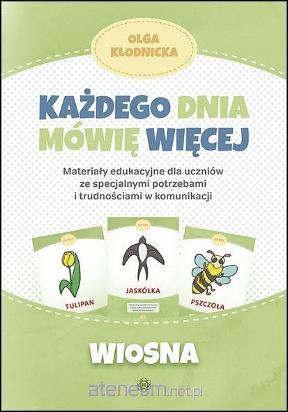 Każdego dnia mówię więcej. Materiały edukacyjne dla uczniów ze specjalnymi potrzebami i trudnościami w komunikacji Książki z serii Każdego dnia mówię więcej mogą być pomocą do codziennej terapii i zabawy zarówno dla specjalistów (logopedów, pedagogów, terapeutów), jak i dla rodziców. Zamieszczone w publikacji obrazki zostały dostosowane do specyfiki pracy z dziećmi ze specjalnymi potrzebami są odpowiednio duże, pozbawione tła i zbędnych szczegółów. Każdy obrazek jest podpisany, dzięki czemu dziecko nieświadomie zapamiętuje obraz wyrazu. Litery w podpisach są koloru czerwonego przykuwającego uwagę nawet maluchów. Zastosowano pismo bezszeryfowe, uznawane za najodpowiedniejsze dla małych dzieci lub dzieci niepełnosprawnych