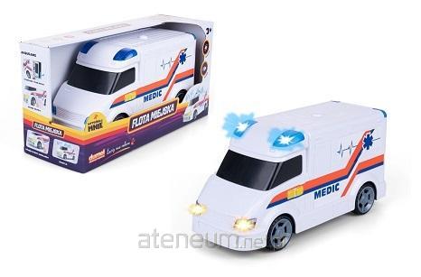 Karetka pogotowia ratunkowego, która wydaje realistyczne odgłosy. Autko wyposażone jest także w światła, a za uruchomienie poszczególnych funkcji odpowiadają przyciski umieszczone z boku zabawki. Tylne drzwi pojazdu otwierają się, dzięki czemu dziecko może umieścić w jego wnętrzu dowolną figurkę lub niewielką zabawkę.