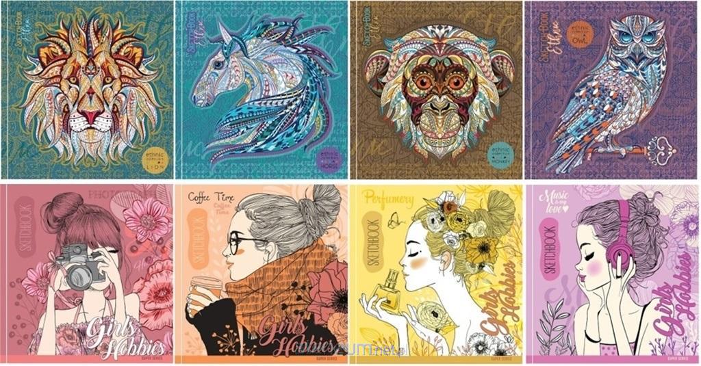 Szkicownik 200x200 36 stron 100g/m2 TW, mix wzorów, wzór wysyłany losowo.