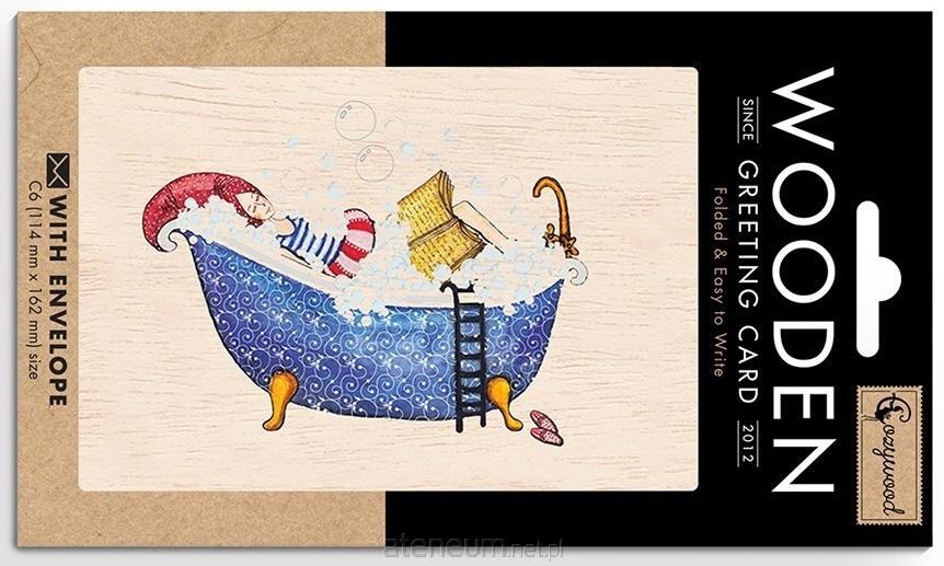 Karnet drewniany C6 + koperta Kobieta z dmuchawcem
